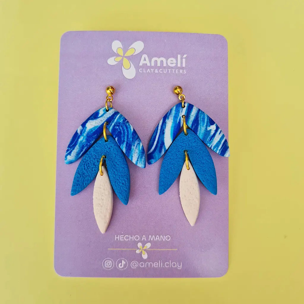 Pendientes de arcilla polimérica hechos a mano, con forma de cascada de 3 hojas.