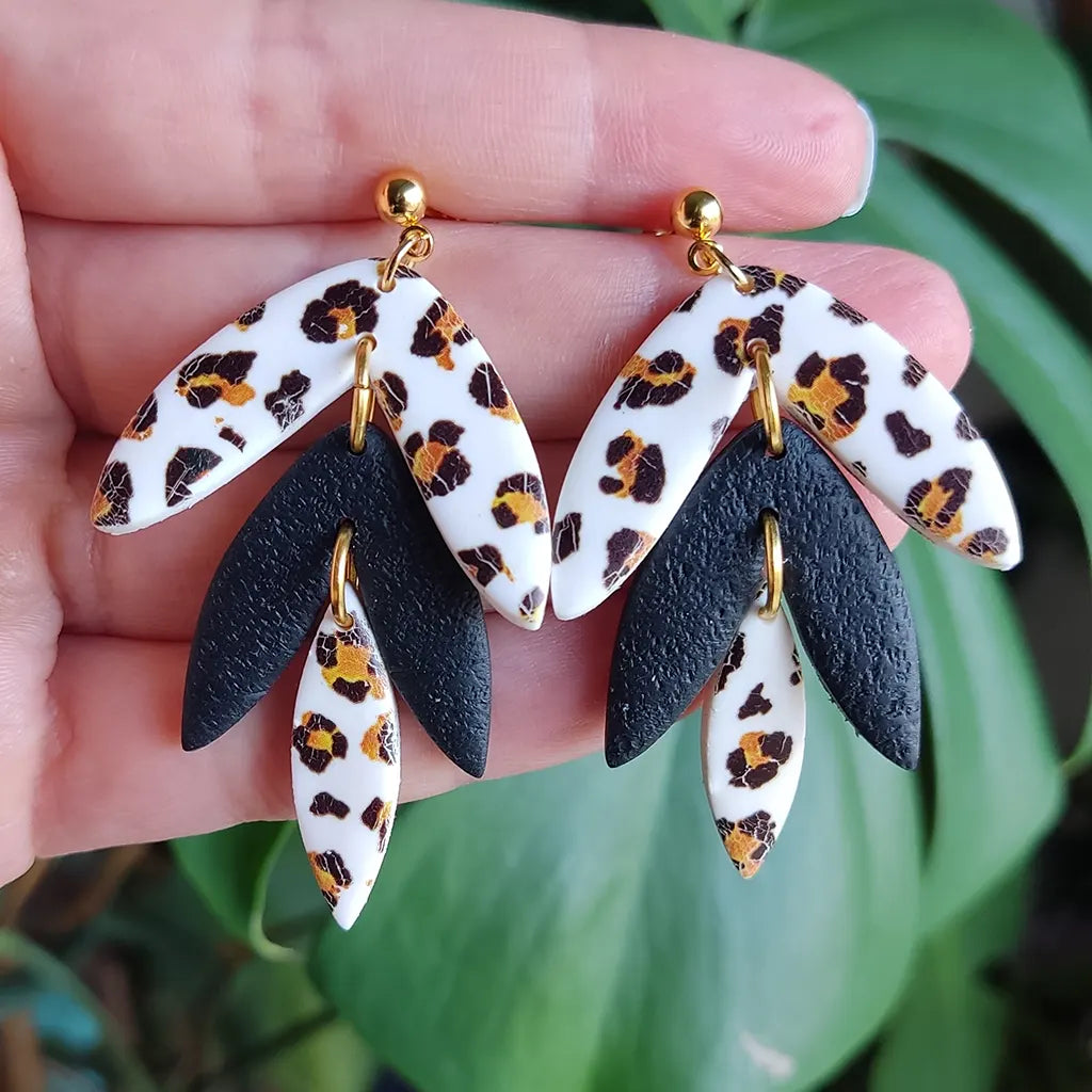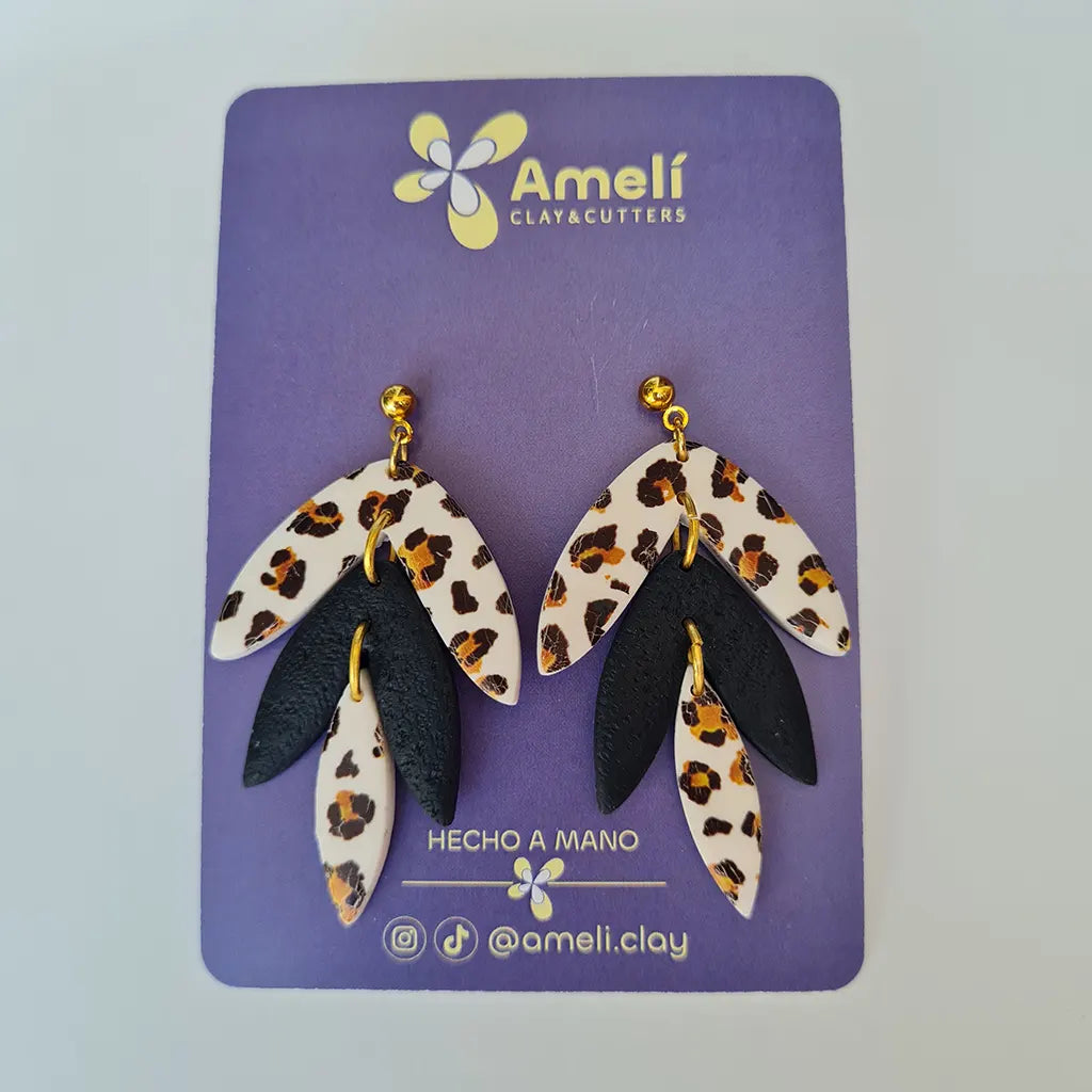 Pendientes de arcilla polimérica hechos a mano, con forma de cascada de 3 hojas.