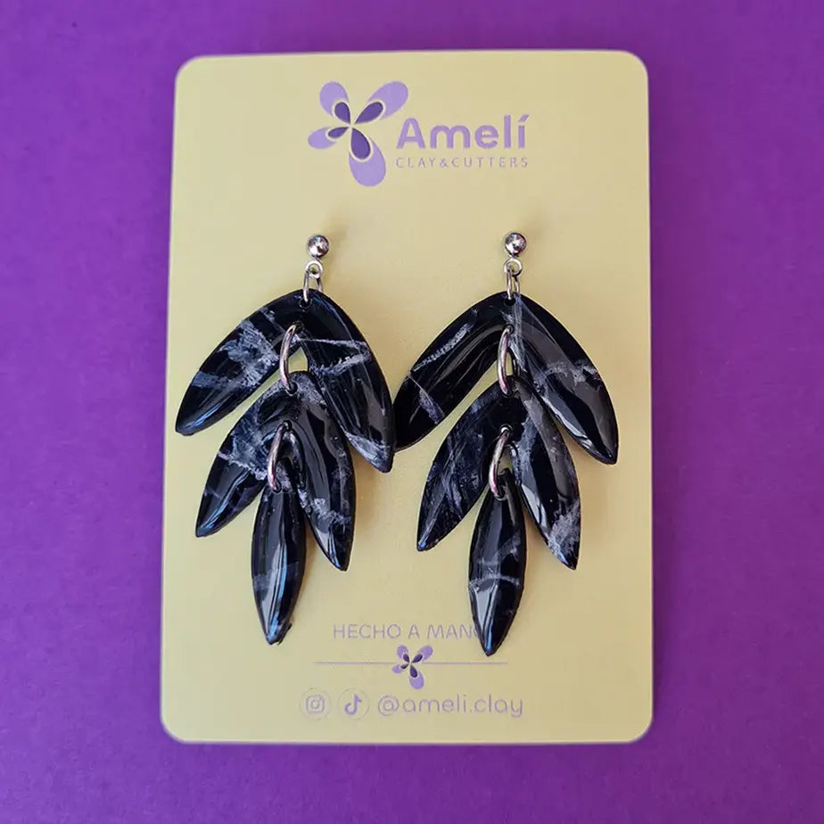 Pendientes de arcilla polimérica hechos a mano, con forma de cascada de 3 hojas.