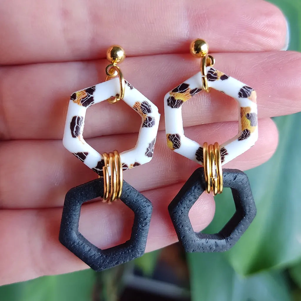 Pendientes de arcilla polimérica hechos a mano.